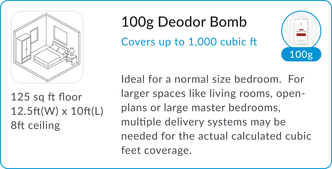 Calculate the cubic footage of space in each room to be treated. Determine the Superstratum Deodor Bomb quantity and packet size required for each room.