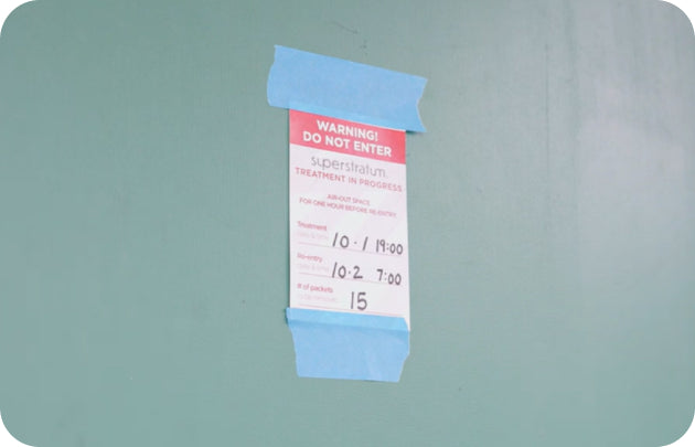 Post warning placard included in the Deodor Bomb kit to entry door to ensure the home remains unoccupied for the entire duration of the gas treatment.