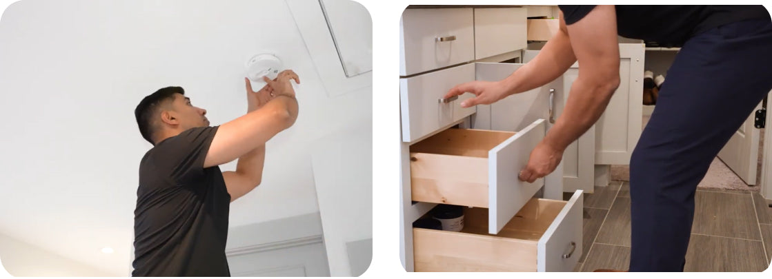 Turn off the smoke detector system, remove smoke detectors, or cover with 6 mil plastic sheeting and seal with painter’s tape. Close all exterior windows, doors, and fireplace damper. Seal any gaps or cracks around exterior windows and doors using painter’s tape and 6 mil plastic sheeting.