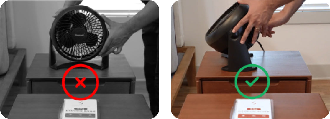 Turn on low speed overhead fans and/or use electrical fans to circulate the chlorine dioxide gas throughout the home, but please do not direct airflow of electrical fans to blow directly over the top of the Deodor Bombs. Providing adequate airflow with fans is important, because stagnant chlorine dioxide gas may cause discoloration on certain surfaces.