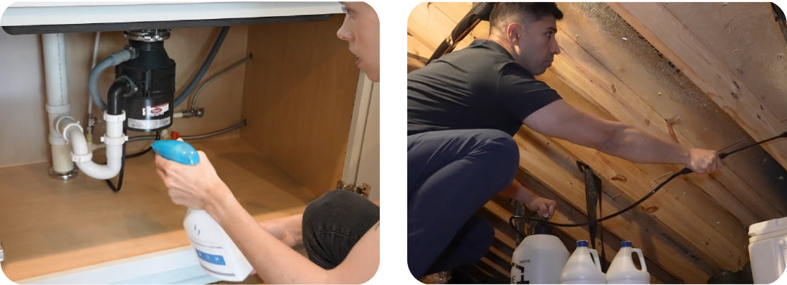 Apply the coating to all moisture-exposed and previously contaminated areas prone to collecting dust. It is safe to use on wood, brick, stone, concrete, siding, outdoor furniture, etc. Ideal locations inside the home include, but are not limited to attics, crawlspaces, basements, wall cavities, grout lines, caulk, baseboards, new air filters, HVAC systems, ductwork and vents, baseboards, around window frames, back sides of furniture and appliances, plumbing, curtains, etc.
