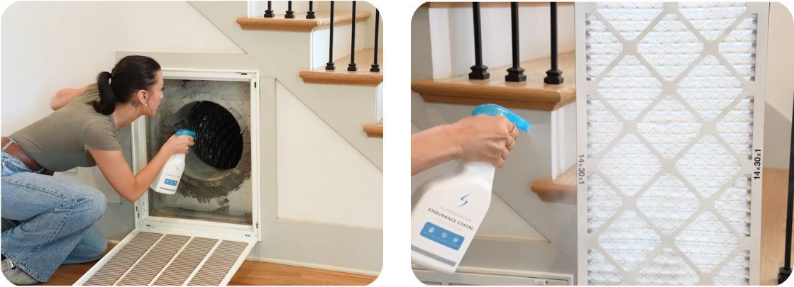 The final step of the Whole Home Detox involves applying Superstratum Endurance Coating on your freshly cleaned surfaces. This water-resistant dry coating resists future mold and mildew growth.